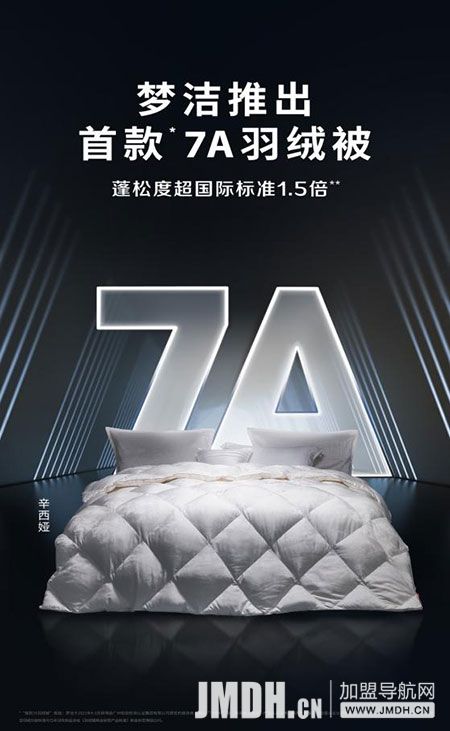 此外,梦洁还突破羽绒行业最高5A标准,重磅推出首款7A级羽绒被;同时率先导入广检集团发布的床品行业最高7A原料标准及高端床上用品标准,成为了行业内首个获得7A原料认证及高端床上用品认证的企业。还有全球首创248×248尺寸大方被、领先的蚕丝被芯可水洗技术、率先推出1000根纱织密度的高奢床品……梦洁以科学创新精神拓展出多个高端化床品品类,满足了人们日益增长的升级需求。