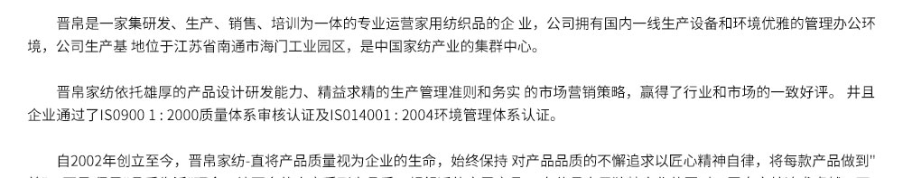 加盟导航网 > 招商中心 > 晋帛家纺